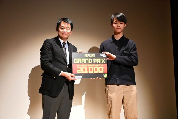 そしていよいよグランプリの発表です。中学生・高校生の部のグランプリには、「構造化された未来の大宮」の土橋璃士さんが選ばれました。トロフィーと、副賞として「たまポン」2万ポイントが贈呈されました。土橋さんは、「最初から最後まで、すごく楽しく取り組めました。発表は緊張したけれど、自分がやれる精一杯のことができたので、とても楽しかったです」と喜びを噛み締めていました。