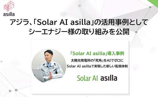 株式会社アジラ(本社:東京都町田市、代表取締役CEO:尾上 剛、以下 アジラ)は、太陽光発電所向けAI監視ソリューション「Solar AI asilla」を活用した株式会社シーエナジー(本社:愛知県名古屋市、代表取締役社長:中川 治、以下 シーエナジー)の導入事例を公開しました。