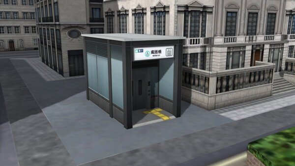 ビルの隙間、店舗前のわずかなスペースにも、役割を持たせるのが現代の都市開発。シェアサイクルや、地下鉄駅の入口を二種類追加している。