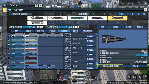カスタム編成機能で、車両の可能性は無限大に。収録車両を組みあわせて、最大10両のオリジナル編成を作ることが可能。あなたの街に夢の編成を走らせ、理想の鉄道風景を実現しよう。