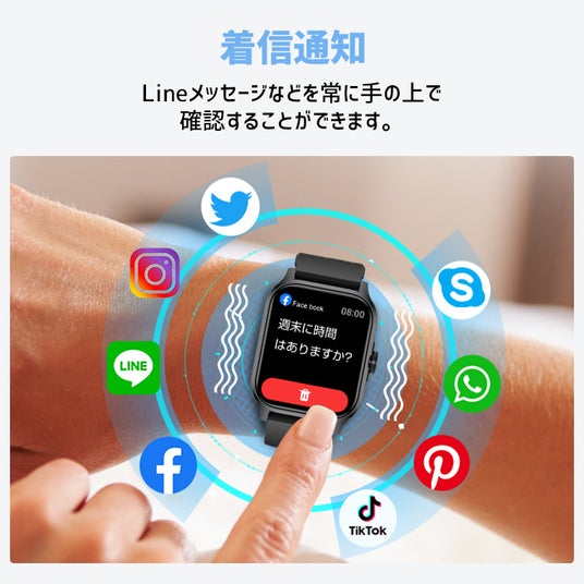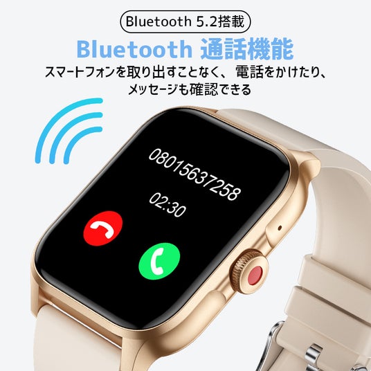 着信通知やBluetooth通話機能に対応し、スマートフォンと連携することで通話や通知の確認が可能です。