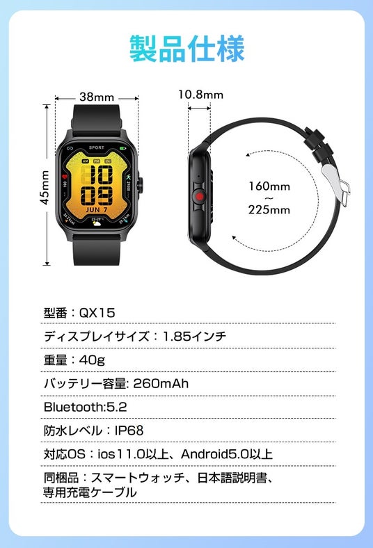 また、1.85インチの大画面ディスプレイを採用しており、通知や情報を見やすく表示できる点も特長です。