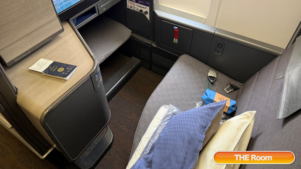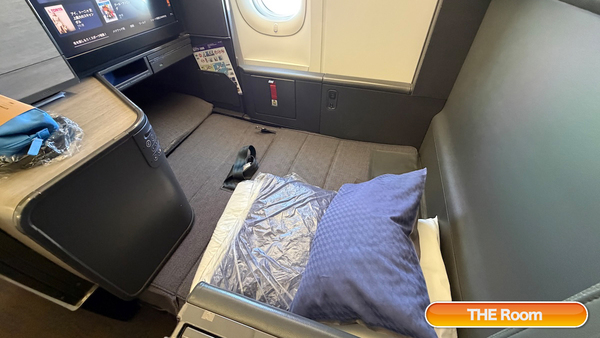 THE Roomでは、広々とした座席の快適性と半個室なるプライベート感で、ゼロとまでは言えないものの、飛行機移動の疲れがフィジカルもメンタルもダメージが全然ない感じです。