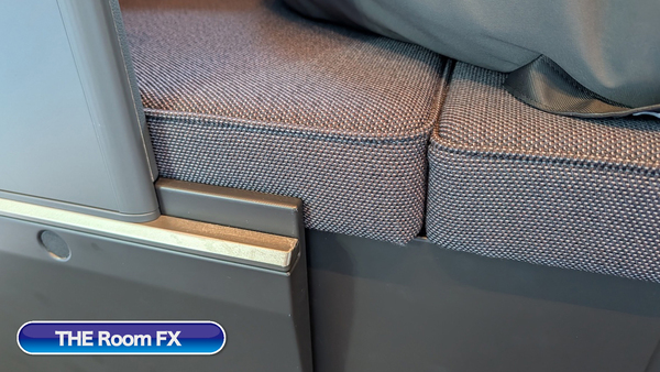 そのためTHE Roomでは、フルフラットにする際に背もたれも稼働して、背もたれ部分も含めてベッドマットに変形します。一方、THE Room FXはフットレスト部分が跳ね上がり、空いている足下のスペースを埋めてフルフラットになる方式。