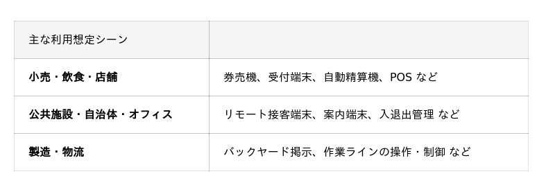 - 快適な操作性で券売機・受付端末・POSなど店舗の省人化とスムーズな案内を支援 -