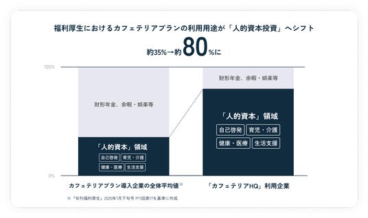 HQサービス利用企業では、カフェテリアプラン(選択型福利厚生)の用途は人的資本領域へと変貌。福利厚生のありようが「人的資本投資」へと変化しています。
