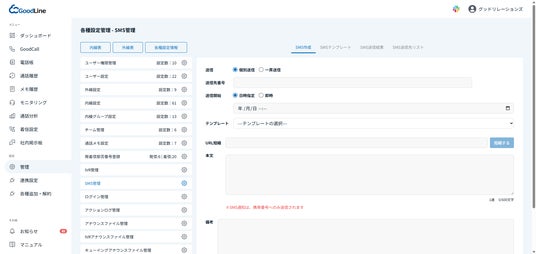 今回のアップデートでは、クラウドPBX「GoodLine」およびクラウドCTI「GoodCall」の管理画面からSMS(ショートメッセージ)を送信できる機能を追加しました。
