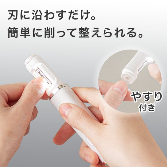 刃に沿わせて削る電動タイプで、爪を短く整えるだけでなく、磨いて仕上げまでできる2WAY仕様となっています。さらにライト付きで、爪先が見えにくいシーンでも使いやすく、毎日の爪ケアをより快適にサポートします。
