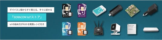 SORACOM IoTストアは、活用実績のあるIoTデバイスを、ウェブサイト上での手続きのみで、買って試すことができる、IoTデバイス通販サイトです。一部のデバイスに用意されている「IoT DIY レシピ」は、必要となる機材一覧と、デバイス開発からクラウド連携までのステップ毎に解説する手順書です。「温湿度の計測」、「遠隔アクセス」、「冠水検知」などの具体的なIoT 活用シーン別に無料で公開しており、IoTシステム開発の初心者をサポートしています。