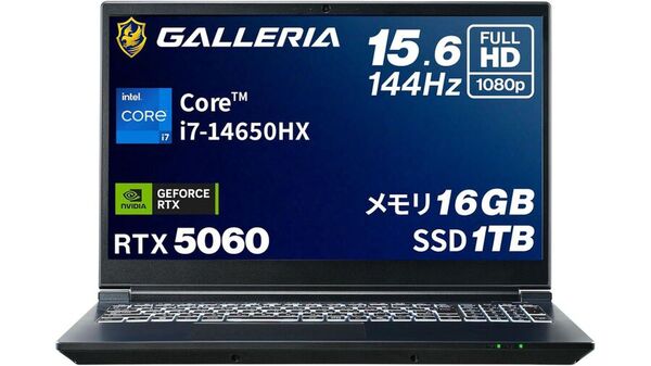 RL7C-R56-5Nは、インテル「Core i7-14650HX」とNVIDIA「GeForce RTX 5060」を搭載する15.6型ゲーミングノートPC。メモリーは16GB(DDR5-4800)、ストレージは1TB M.2 SSD、解像度はフルHD(1920×1080ドット)、リフレッシュレートは144Hz、OSはWindows 11 Homeなど。