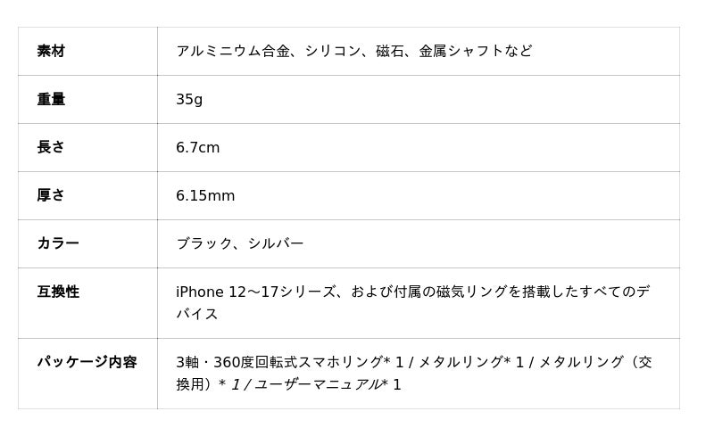 製品仕様 | G09 3軸・360度回転式スマホリング