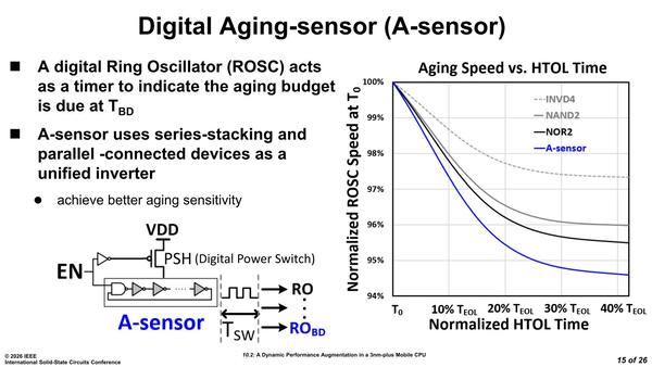 これを実行すると、予期せぬ形でシリコンの劣化が加速する可能性がある。そこで劣化具合を確認するためのAging-sensor(A-sensor)を搭載する。