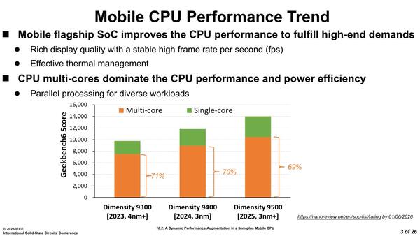 ISSCCのSession 10はデジタル回路をどう実装するかを論じる"Digital Processing and Circuit Techniques"だ。ここでMediaTekはDimensity 9500の実装を発表した。