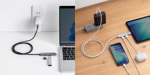 この新製品は、充電ケーブルでありながらUSB AポートとUSB Type-Cポートを増設できるのが大きな特徴だ。最大95WのPD出力に対応し、ノートPCへの給電がスムーズなため、効率的な作業環境を提供する。また、USB 3.2 Gen1をサポートし、最大5Gbpsのデータ転送速度で、外出先でもストレスフリーなデータ管理を実現する。