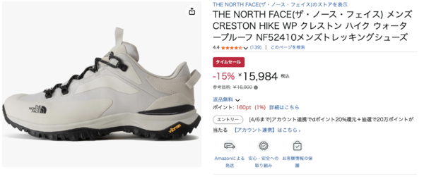 THE NORTH FACEのCRESTON HIKE WP トレッキングシューズが、現在Amazonにて15%OFFの15,984円で販売されています!