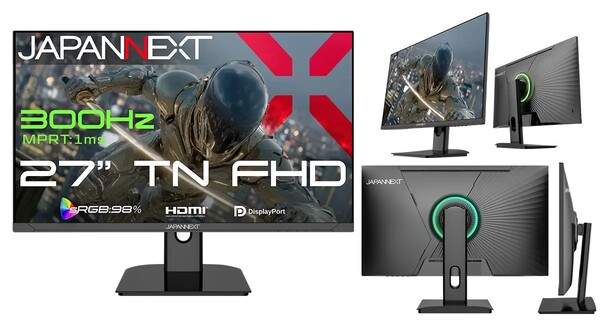 JAPANNEXTは、300Hzの高速リフレッシュレートと1msの高速応答速度を誇る、27インチのフルHD解像度を持つゲーミングモニター「JN-T27G300F」を3月19日に発売する。価格は23,980円(直販価格:税込)で、ECサイト限定での販売となる。
