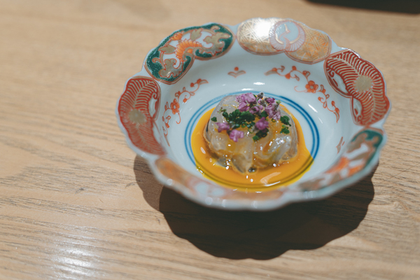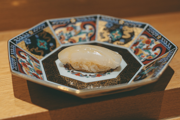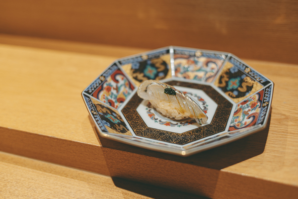 最初の一貫は、そんなシャリの魅力をしっかり味わえるという長崎の「かすご鯛」。皮目を湯引きすることでほのかな香ばしさが加わり、口に入れた瞬間に米の甘みと鯛の旨味がふわりと広がります。徳島のスミイカは旨味を引き出すため一日寝かせているそうで、使用するのはイカの中でも最も厚みのある部分のみ。シャリと同じくらいの厚さがありながら歯切れがよく、噛むほどに広がる自然な甘みが印象的でした。