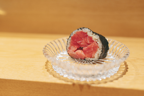 コース終盤には、お店の代名詞ともいえるマグロの赤身と中トロが登場。マグロは、多くの名店が卸先に指定しているという「藤田水産」から仕入れているものだそうで、このマグロを目当てに通うお客さんも多いのだとか。