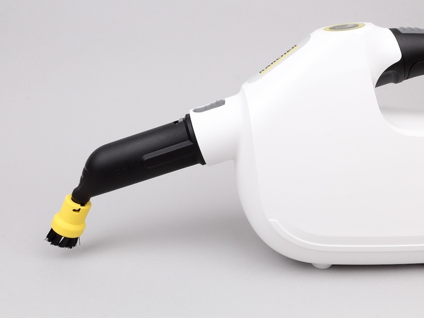 一番小さいのが「ブラシ」。「ノズルヘッド」と一緒に使い、細かい部分の汚れをかき出すのに役立ちます。装着は簡単で、ノズルヘッドの先端にブラシを差し込み、回して固定。次に、ノズルヘッドを本体にカチッと音がするまで差し込めばOKです。