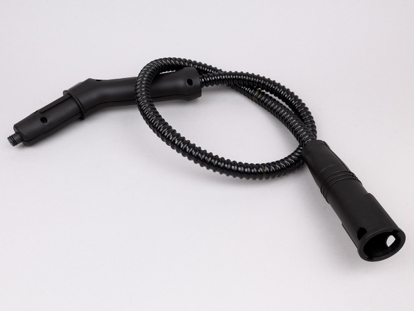 そんな時は、「延長スチームホース」を使いましょう。その名の通り本体とブラシの間に取り付け、先端を延長してくれるもの。ホースですから自在に曲がり、とくに細かな部分の作業で役立ちます。また、本体ごと持ち上げて動かすといった筋トレじみた作業から解放されるので、翌日腕がパンパンになる心配もありません。