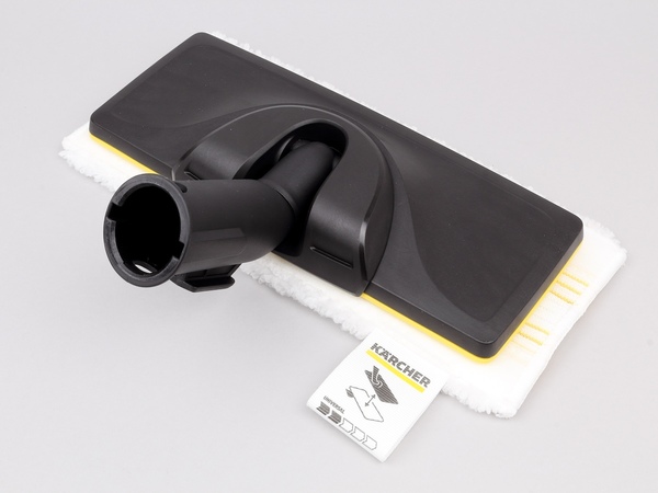 ハンドブラシよりさらに横幅が大きくなったのが、「フロアノズル」。幅が約24cmあり、広範囲を一気に掃除できます。このノズルは単体では使用せず、「マイクロファイバークロス」を貼り付けて使用。完全に、床の拭き掃除用ですね。