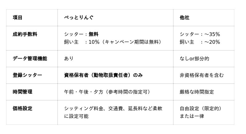 ぺっとりんぐは「信頼・安心の可視化」と「ペットシッターの業務効率化」を両立することを方針に、- 動物取扱責任者として選任されていることを確認できたシッターのみが登録できる掲載ポリシー