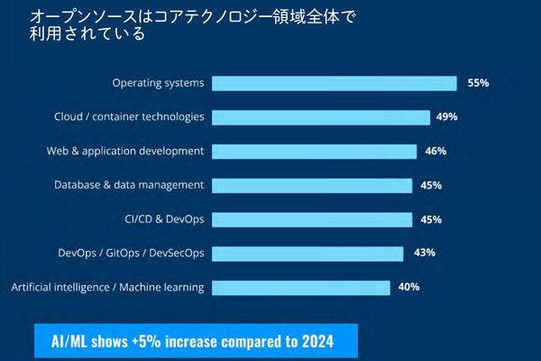 ・オープンソースソフトウェア(OSS)の採用率、AI/ML領域では4割に到達