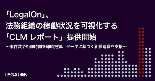株式会社LegalOn Technologiesは3月13日に、法務組織の稼働状況を可視化する分析機能「CLMレポート」の提供を3月から開始したことを発表した。同社が提供する法務特化型AIエージェントに搭載のWorld Leading Legal AI「LegalOn」において、法務案件の受付から進捗管理までを一元化する「マターマネジメント(案件管理)」の新機能として提供するという。