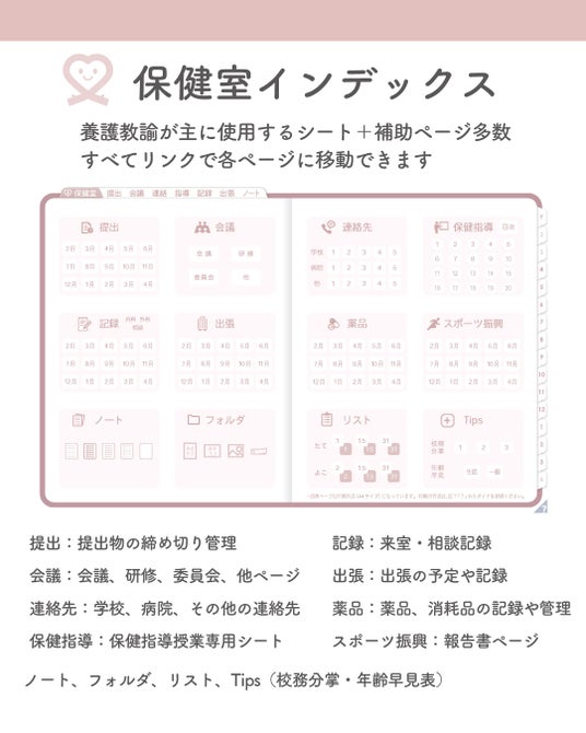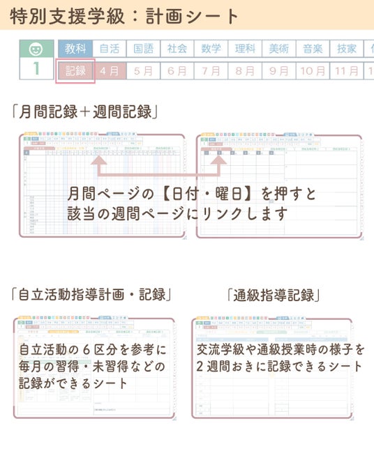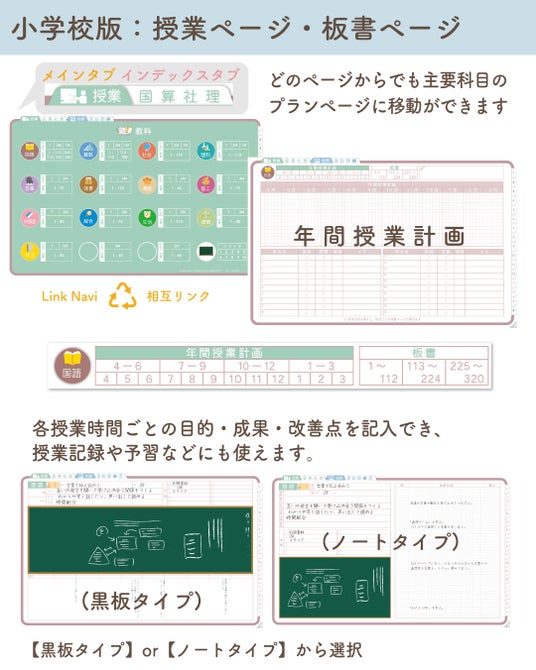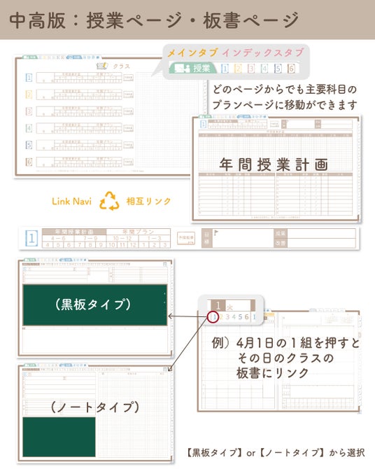 リンク機能などを活用し、必要なページへ素早くアクセスできる構造で、教員の時間管理と業務整理をサポートします。