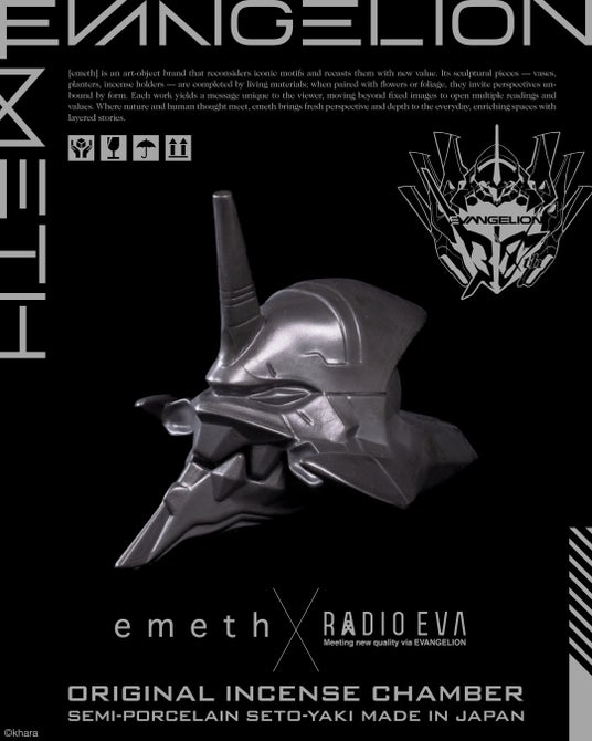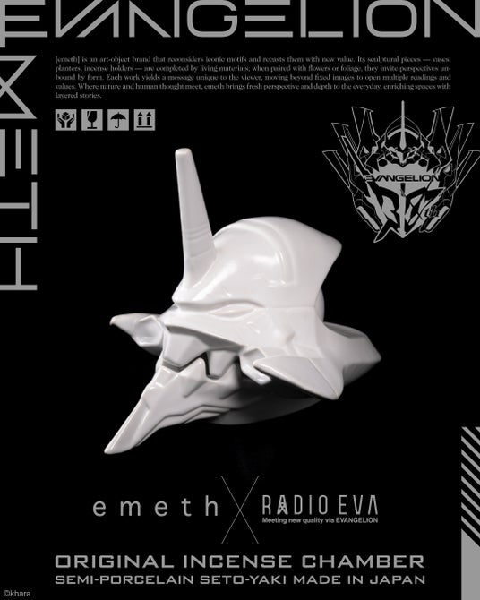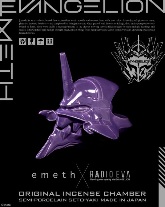 エッジの効いた陶器を展開するブランド「emeth」と「RADIO EVA」によるコラボレーションアイテムとして、エヴァンゲリオン初号機をモチーフにしたオリジナルインセンスチャンバー「EVA-01 INCENSE CHAMBER by emeth」が登場します。現在、ZOZOTOWNにて予約受付中で、2026年3月27日に発売予定です。