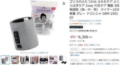 ドウシシャのレッグケア機「ゴリラのふたつかみ GRM-2501」が、Amazonで割引対象。過去価格6,831円のところ、8%オフの6,306円で販売中。