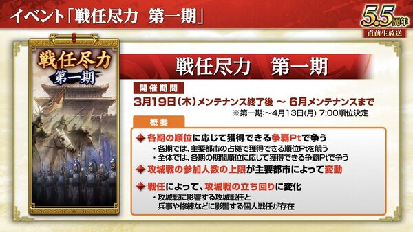 『三國志 覇道』新長期イベント「戦任尽力」が開催中!5.5周年を記念したプレゼントキャンペーンも実施