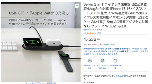 最新規格「Qi2」に対応した「ベルキン2 in 1 ワイヤレス充電器 Qi2モデル」がAmazonで販売中だ。本製品は、WPCにより世界初のQi2認証製品として認定されており、次世代ワイヤレス充電に対応した注目のモデルとなっている。価格は5,536円。