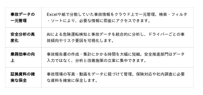 Excel・書類からの脱却、事故データの一元管理でドライバーの安全分析を加速