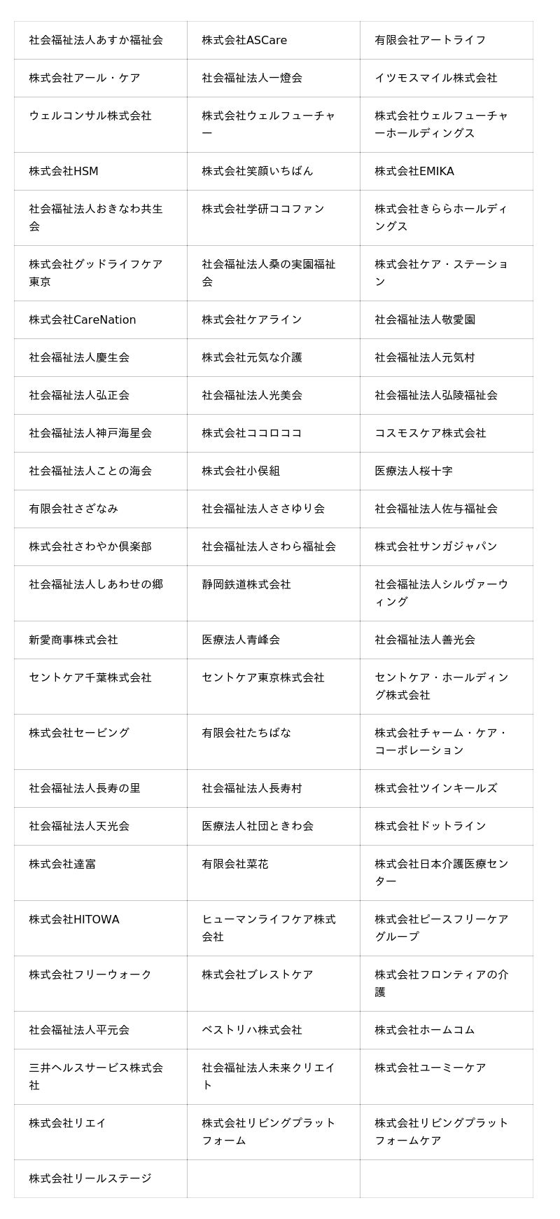パートナー介護事業者様一覧(50音順・一部掲載)