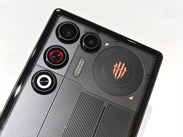 ディスプレーは6.85型で、カメラの穴がわかりにくいアンダーディスプレーカメラは1600万画素だ。今回テストした透明ブラックモデルは背面の内部も見えるデザインで、どことなくNothing Phoneをイメージさせる。右上にはREDMAGICのロゴが光るLEDライトも配置している。