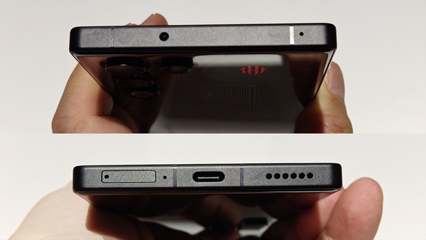 本体上下の端子やSIMトレイの配置はオーソドックス。なお本体サイズは約76.5×163.8 x8.0mm、重さは207gである。バッテリーは7000mAhに増え80Wの急速充電に対応。長時間のゲームプレイに有用なバイパス充電機能も搭載した。