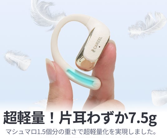 片耳約7.5gの超軽量設計に加え、人間工学に基づいた耳掛け型デザインを採用。