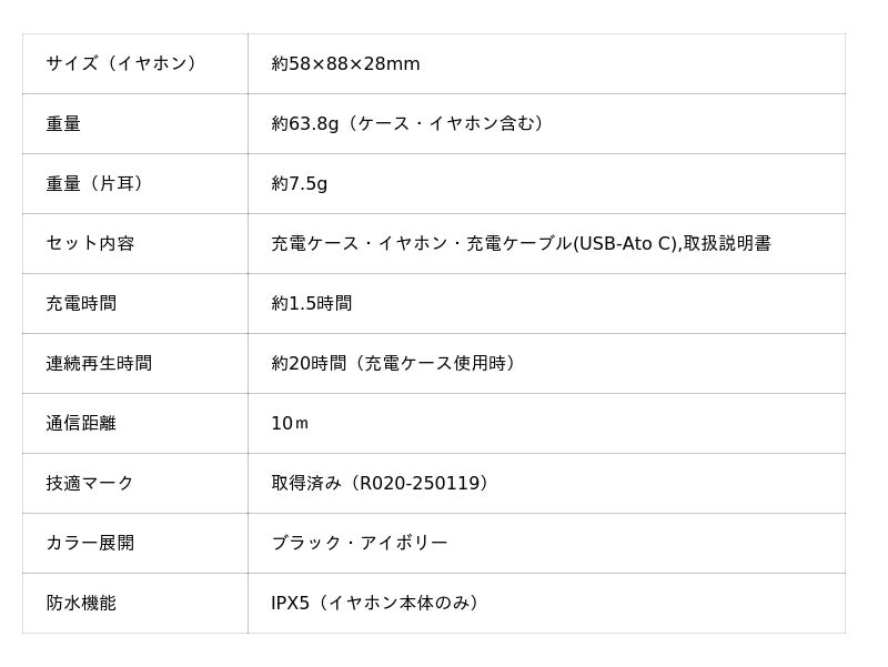 主な用途:ながら聴き(ながら聴き・ビジネス・学校・フィットネス・睡眠)・通話