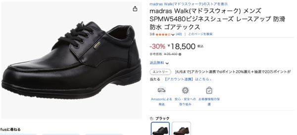 madras WalkのSPMW5480ビジネスシューズが、現在Amazonにて30%OFFの18,500円で販売されています!