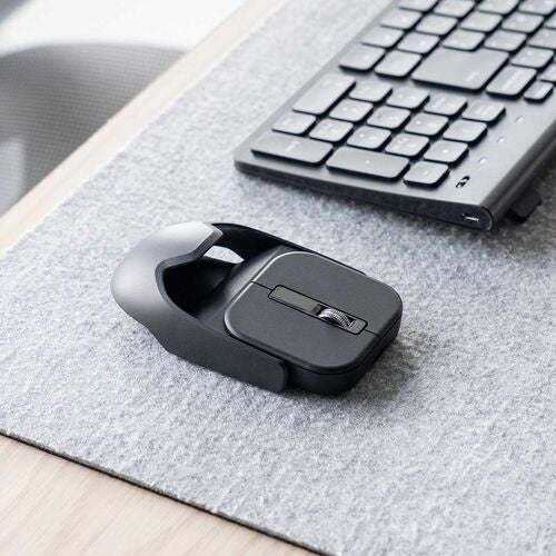 「マグネット着脱式 小型ワイヤレスマウス」の最大の特徴は、マグネットを利用してフルサイズとコンパクトサイズを簡単に使い分けられることにある。フルサイズにすれば握りやすく長時間のデスクワークに最適であり、コンパクトサイズにすることで持ち運びが容易になる。作業シーンに合わせて1台で使い分けができる利便性は、ビジネスパーソンにとって頼もしい味方となる。