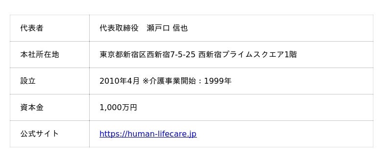 【ヒューマンライフケア株式会社 会社概要】