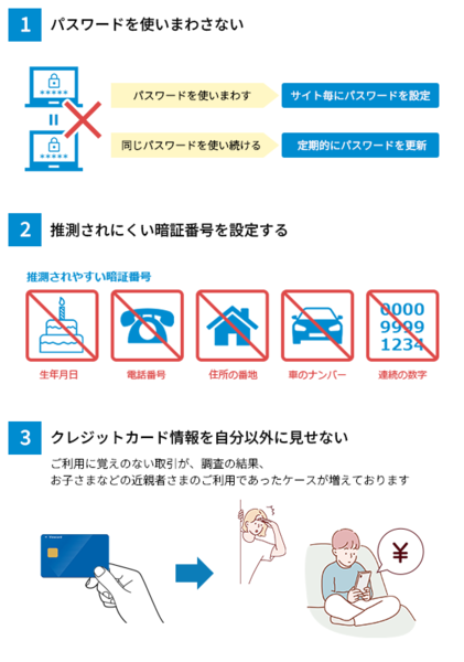 最後の3つ目は「クレジットカード情報を自分以外に見せない」こと。