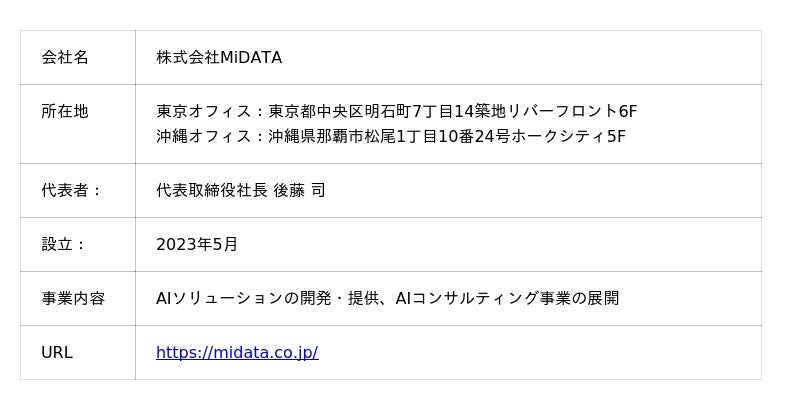 ■MiDATA株式会社 概要