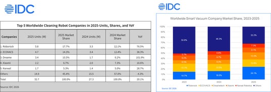 ・IDC Worldwide Quarterly Smart Vacuum Robotics Tracker, 2025Q4(2026年IDC調査)