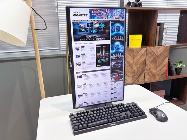 さらにピボット90度回転にも対応しており、縦長表示への切り替えが可能だ。コードやドキュメントをスクロールせずに広く見渡したい開発者や、縦長のWebページやPDFを扱う機会が多いビジネスユーザーには、この機能が思いのほか役に立つ。ゲーミングディスプレーでありながら、仕事の用途に応じて使い方を変えられる柔軟さを持っている。