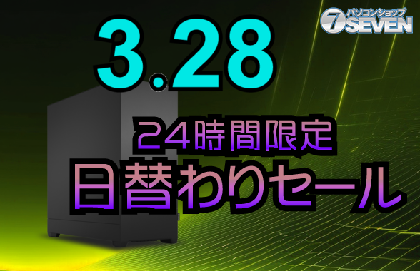 セブンアールジャパンが運営するパソコンショップSEVENは、3月28日に『2026/3/28 24時間限定セール』を開催する。このセールでは、最新のゲーミングPCやデスクトップPCが最大114,000円の大幅値引きで購入可能だ。期間は3月28日の0:00から23:59までの24時間限定で行われる。