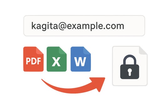 施錠時にメールの宛先を自動取得するため、「暗号化の受取人」と「メールの送信先」が一致します。万が一メールを誤送信しても、指定した受取人以外はファイルを開くことができません。パスワード付きZIPでは実現できなかった、送信経路とは独立したアクセス制御を提供します。