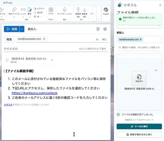 Outlook アドインで脱パスワード付きZIPを実現 ― 暗号化ファイル共有「カギスル」、Microsoft Outlook アドインを公開 ―