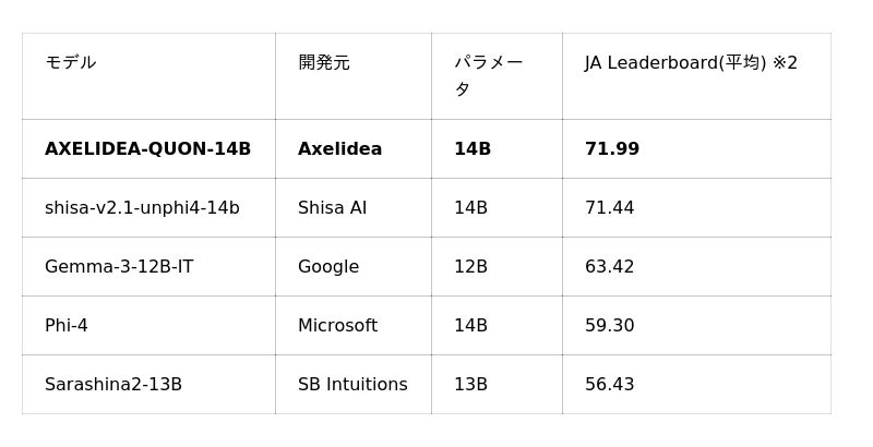 「知識の組み合わせ方」を学習する新発想の日本語特化LLM「AXELIDEA-QUON-14B-Japanese-v01」を公開します(GENIAC-PRIZE 特別賞「地域賞」受賞企業)